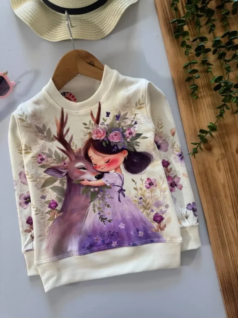 بلوز تک دخترانه، طرح دختر و آهو عدد