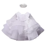 ست پیراهن و گیره مو دخترانه مدل مجلسی پرنسسی پفی رنگ سفید